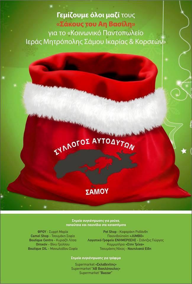 Ο Σύλλογος Αυτοδυτών Σάμου στο πλαίσιο της κοινωνικής του προσφοράς, ξεκινά την προσπάθεια συλλογής τροφίμων,παιχνιδιών και ρούχων για το Κοινωνικό Παντοπωλείο Αγάπης της Ιεράς Μητροπόλεως Σάμου.