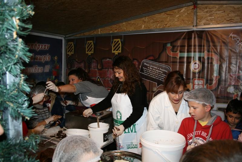 Από νωρίς το απόγευμα μικροί και μεγάλοι είχαν μαζευτεί στην κεντρική πλατεία της πόλης όπου είχαν την ευκαιρία να φτιάξουν και να γευτούν ζεστή σοκολάτα, σοκολατάκια, μπισκότα και γλυκά στο «Εργαστήριο σοκολάτας», να ζεσταθούν με το κρασί από το «Κελάρι του Άγιου Βασίλη» και να βγάλουν φωτογραφίες με τον Άγιο Βασίλη, προσδοκώντας να τους φέρει το καλύτερο δώρο.