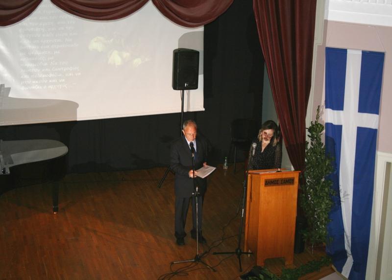 Ομιλήτρια ήταν η εκπαιδευτικός κα. Σοφία Μαλάνου, απαγγελία η κα.Ευαγγελία Τρικιριώτη και αφήγηση ο κ.Γιώργος Δανέζης. Στο μουσικό μέρος πιάνο και ερμηνεία τραγουδιών ο Μανώλης Σάββας, ενώ στο κλαρίνο ο Γιώργος Μαυρής.