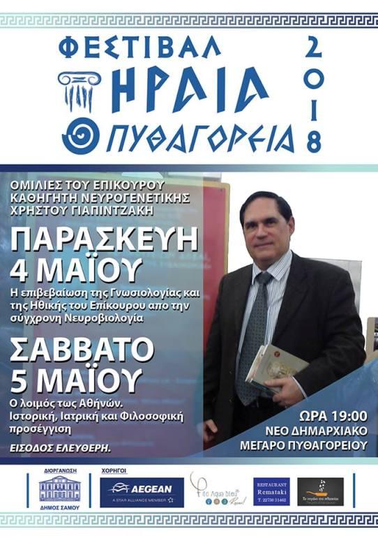 Στο πλαίσιο του Φεστιβάλ Ηραία -Πυθαγόρεια 2018 θα πραγματοποιηθούν ομιλίες στο νέο δημαρχιακό μέγαρο Πυθαγορείου.