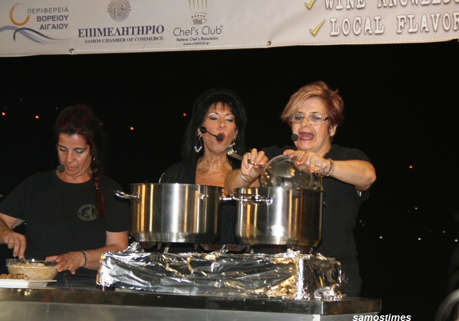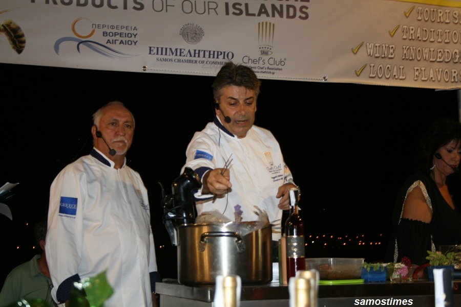 Η σαμιώτικη μουσταλευριά, όπως και τα κρασιά του ΕΟΣ Σάμου, έγιναν ανάρπαστα από τον κόσμο που παρακολουθούσε με ενθουσιασμό τις εκδηλώσεις. Ένα πολύ ιδιαίτερο MasterClass γαστρονομίας παρουσιάστηκεαπό τη Λέσχη Αρχιμαγείρων Ελλάδος με πρωτοποριακές συνταγές και έμπνευση από το σαμιώτικο μοσχάτο σταφύλι και τη δυναμική του μούστου αλλά και αξιοποίηση σαμιακών και μόνο προϊόντων: Αρνάκι με σάλτσα κρασιού από το παλαιωμένο επί 5 χρόνια σε δρύινο βαρέλι κρασί SamosΑnthemisκαι τερίνα λαχανικών και τυριών με σάλτσα μούστου και πετιμέζι, από τον πρόεδρο της Ομοσπονδίας Αρχιμαγείρων Ελλάδος Μίλτο Καρούμπα.