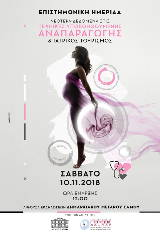 Επιστημονική Ημερίδα με θέμα " ΝΕΟΤΕΡΑ ΔΕΔΟΜΕΝΑ ΣΤΙΣ ΤΕΧΝΙΚΕΣ ΥΠΟΒΟΗΘΟΥΜΕΝΗΣ ΑΝΑΠΑΡΑΓΩΓΗΣ & ΙΑΤΡΙΚΟΣ ΤΟΥΡΙΣΜΟΣ'' θα πραγματοποιηθεί το Σάββατο 10 Νοεμβρίου 2018 στην αίθουσα εκδηλώσεων του δήμου Σάμου.